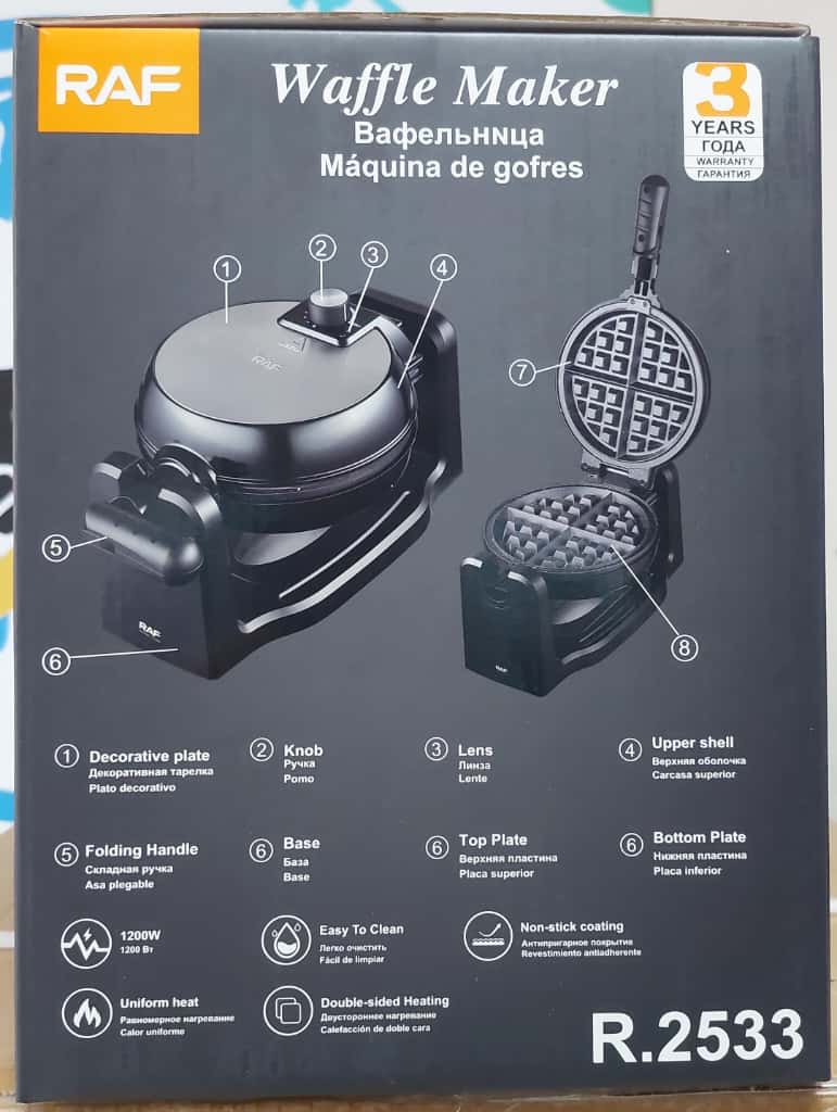 waflera RAF giratoria . El diseño giratorio de 360° permite una cocción uniforme de los waffles por ambos lados.
